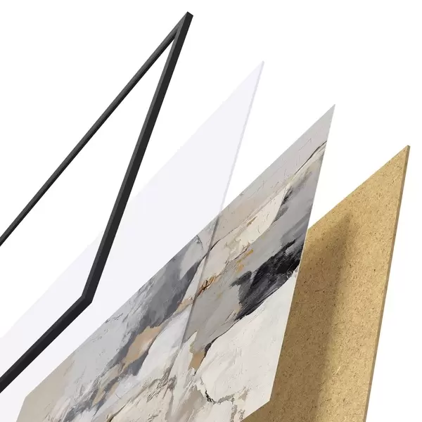 Das Poster besteht aus einem Rahmen, Plexiglas, einem gedruckten Bild und einer Rückwand aus Spanplatten. Dank der Halterungen auf der Rückseite kann das Poster sofort an die Wand gehängt werden.