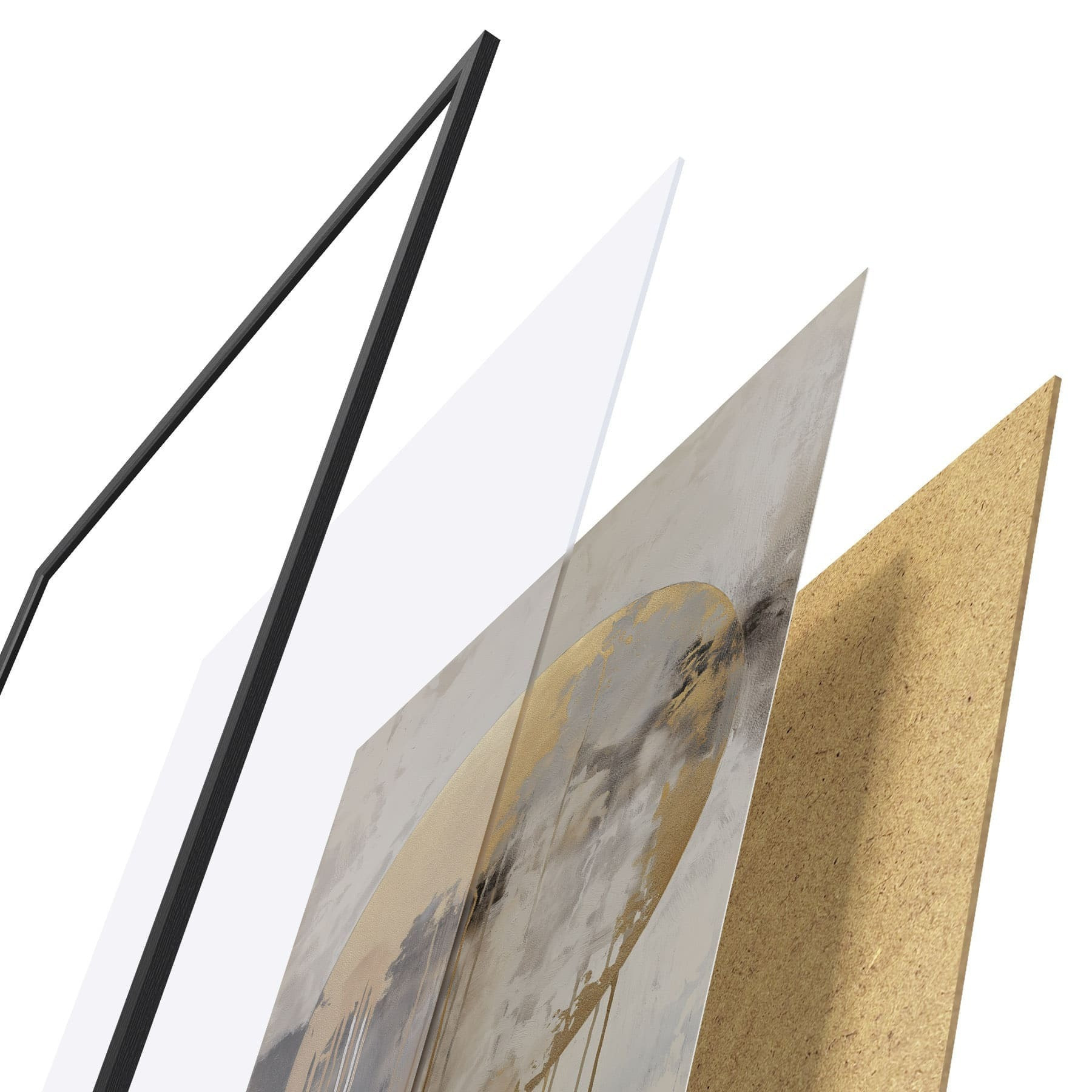Das Poster besteht aus einem Rahmen, Plexiglas, einem gedruckten Bild und einer Rückwand aus Spanplatten. Dank der Halterungen auf der Rückseite kann das Poster sofort an die Wand gehängt werden.