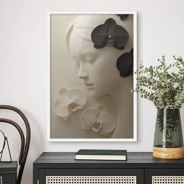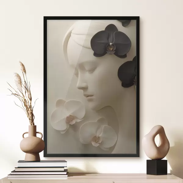 Poster Mädchen mit Orchideen im Flachreliefstil f47942