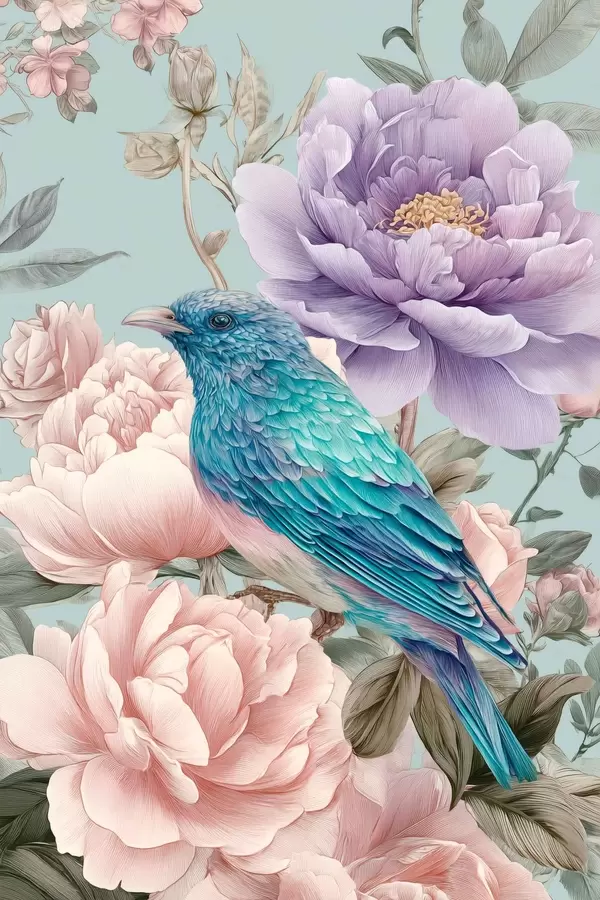 Poster Singende Vögel in Rosen Nr f47944
