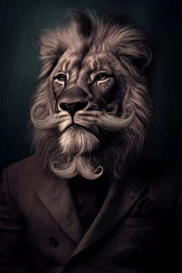 Poster Löwe mit einem Bart im Friseursalon-Stil Nr f47947