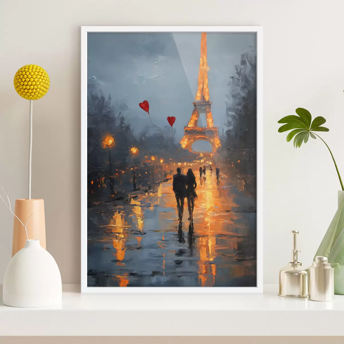 Poster Romantischer Spaziergang in Paris im Stil eines Ölgemäldes Nr f47952