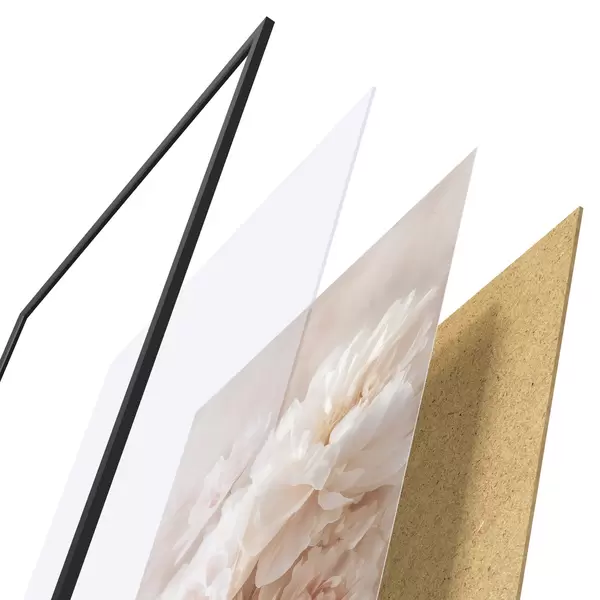 Das Poster besteht aus einem Rahmen, Plexiglas, einem gedruckten Bild und einer Rückwand aus Spanplatten. Dank der Halterungen auf der Rückseite kann das Poster sofort an die Wand gehängt werden.