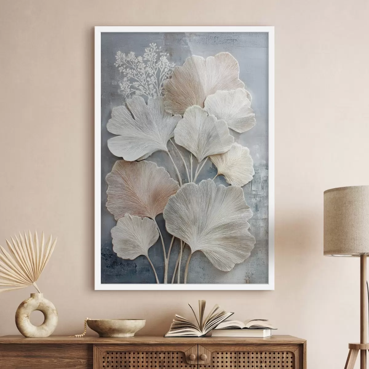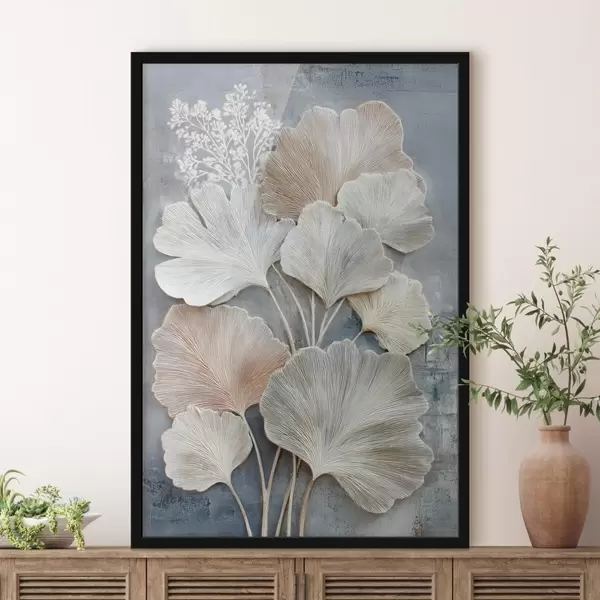 Poster Abstrakte Blumenkomposition in einer beige-blauen Farbpalette Nr f47963