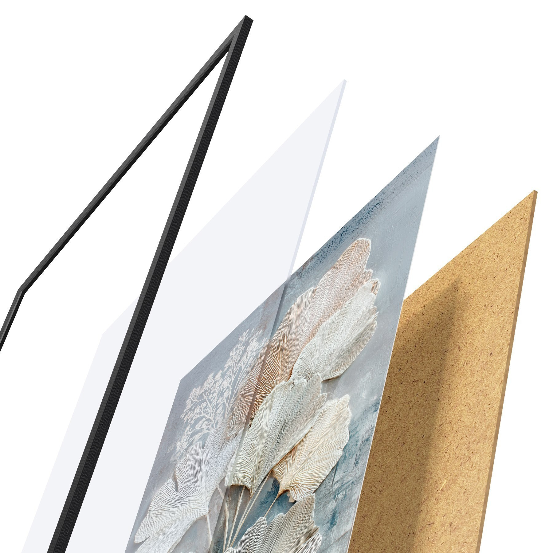 Das Poster besteht aus einem Rahmen, Plexiglas, einem gedruckten Bild und einer Rückwand aus Spanplatten. Dank der Halterungen auf der Rückseite kann das Poster sofort an die Wand gehängt werden.