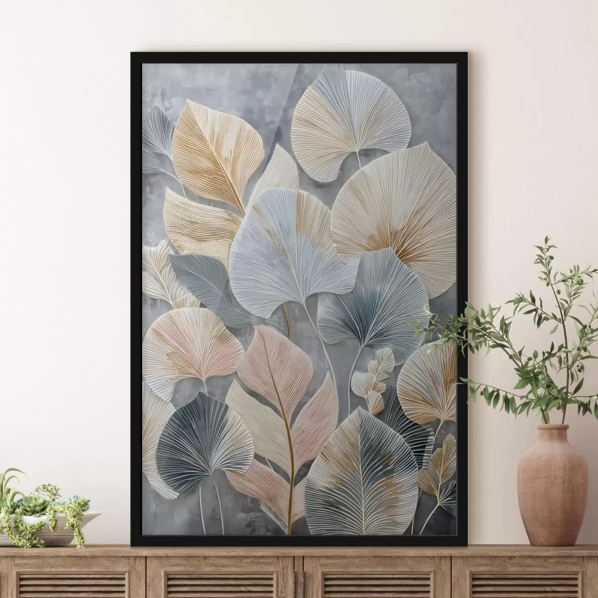 Poster Buntes dekoratives Blattwerk mit ausgeprägter Textur auf dunklem Hintergrund Nr f47964