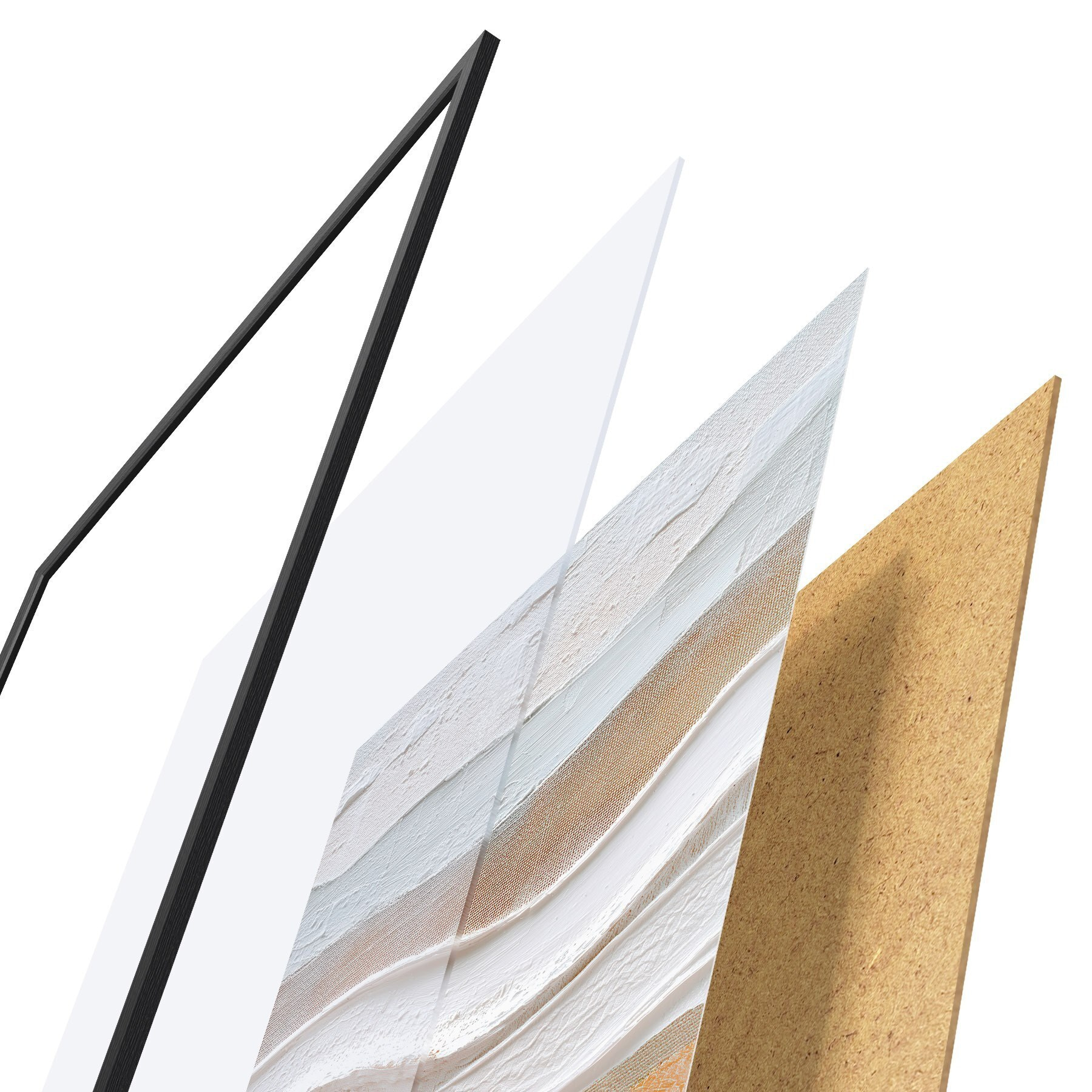 Das Poster besteht aus einem Rahmen, Plexiglas, einem gedruckten Bild und einer Rückwand aus Spanplatten. Dank der Halterungen auf der Rückseite kann das Poster sofort an die Wand gehängt werden.
