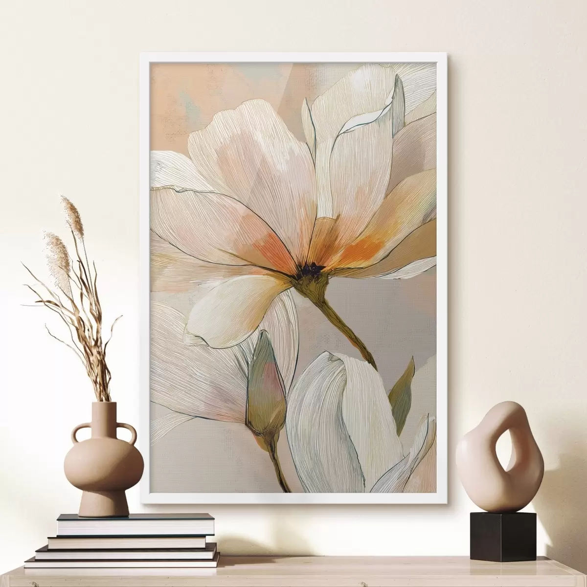 Poster Blumenarrangement in Pfirsich- und Blautönen f47969