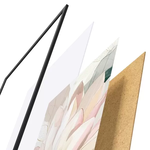 Das Poster besteht aus einem Rahmen, Plexiglas, einem gedruckten Bild und einer Rückwand aus Spanplatten. Dank der Halterungen auf der Rückseite kann das Poster sofort an die Wand gehängt werden.