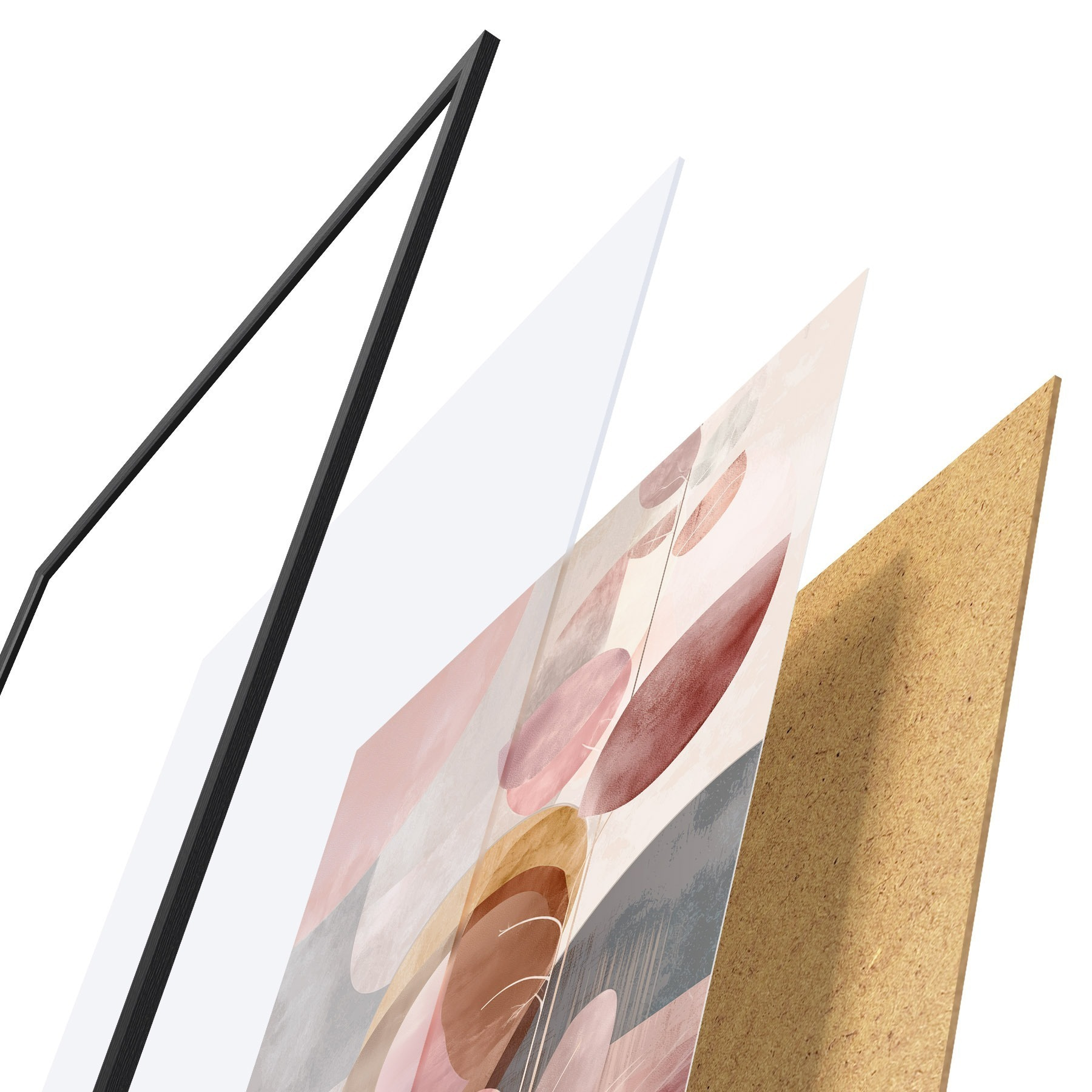 Das Poster besteht aus einem Rahmen, Plexiglas, einem gedruckten Bild und einer Rückwand aus Spanplatten. Dank der Halterungen auf der Rückseite kann das Poster sofort an die Wand gehängt werden.