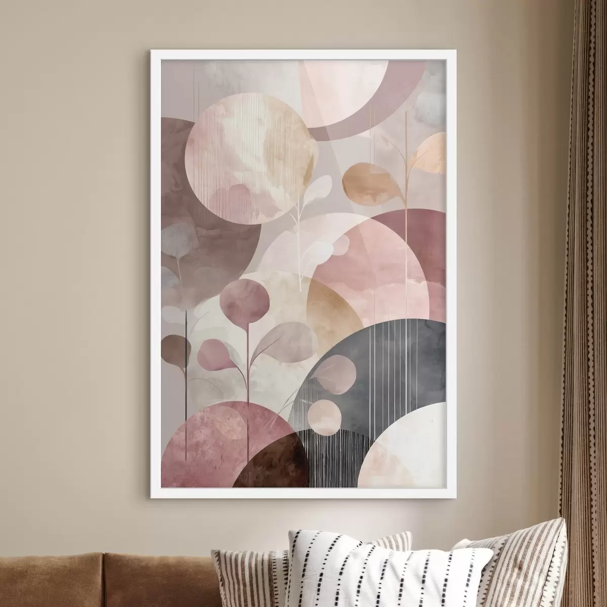 Poster Komposition aus durchscheinenden Kreisen und stilisierten Zweigen f47978