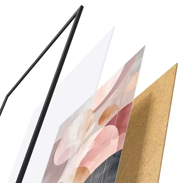 Das Poster besteht aus einem Rahmen, Plexiglas, einem gedruckten Bild und einer Rückwand aus Spanplatten. Dank der Halterungen auf der Rückseite kann das Poster sofort an die Wand gehängt werden.