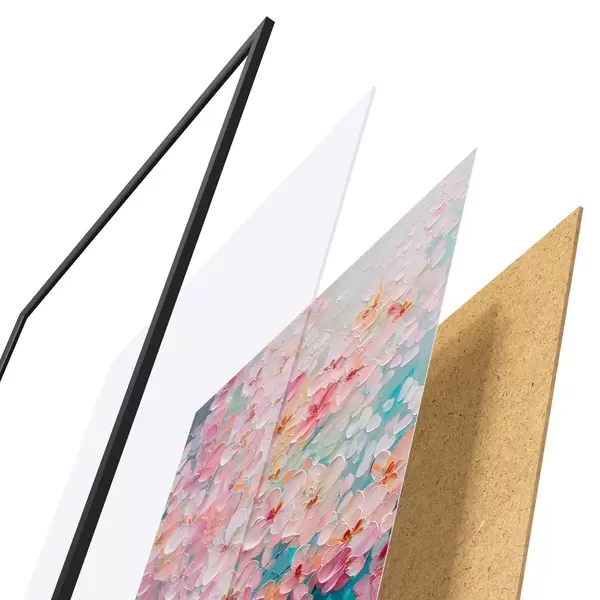 Das Poster besteht aus einem Rahmen, Plexiglas, einem gedruckten Bild und einer Rückwand aus Spanplatten. Dank der Halterungen auf der Rückseite kann das Poster sofort an die Wand gehängt werden.