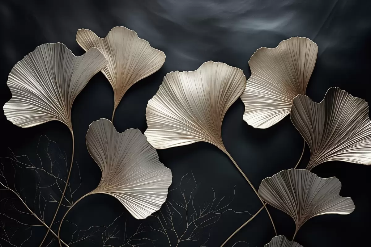 Poster Ginkgoblätter auf dunklem Hintergrund f48008
