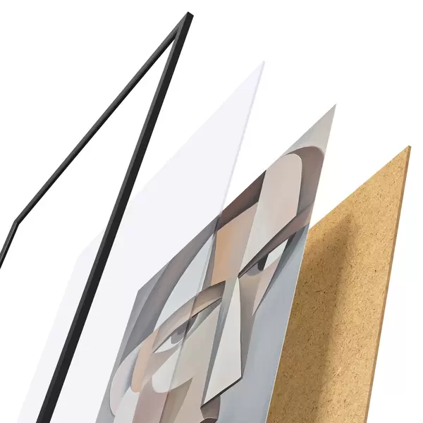 Das Poster besteht aus einem Rahmen, Plexiglas, einem gedruckten Bild und einer Rückwand aus Spanplatten. Dank der Halterungen auf der Rückseite kann das Poster sofort an die Wand gehängt werden.