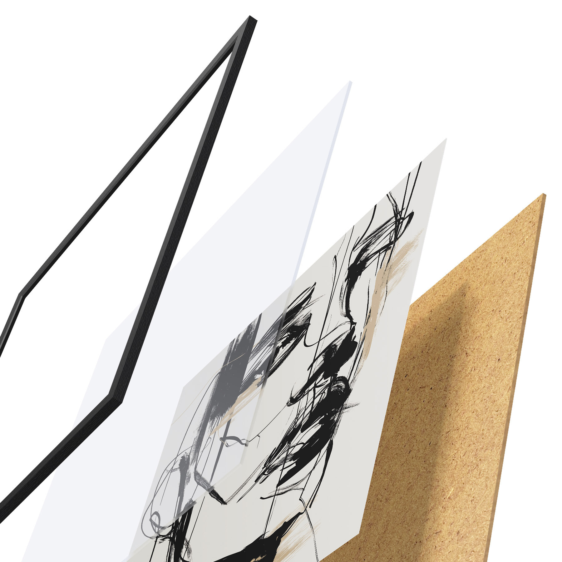 Das Poster besteht aus einem Rahmen, Plexiglas, einem gedruckten Bild und einer Rückwand aus Spanplatten. Dank der Halterungen auf der Rückseite kann das Poster sofort an die Wand gehängt werden.