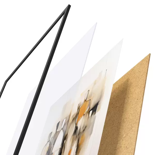 Das Poster besteht aus einem Rahmen, Plexiglas, einem gedruckten Bild und einer Rückwand aus Spanplatten. Dank der Halterungen auf der Rückseite kann das Poster sofort an die Wand gehängt werden.