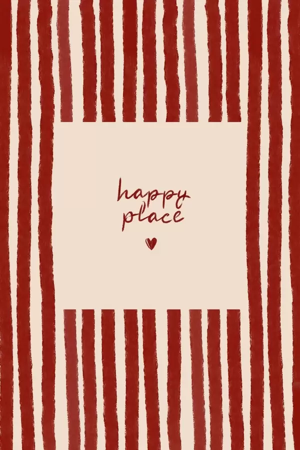 Poster Rote Streifen mit „Happy Place“-Text f48025