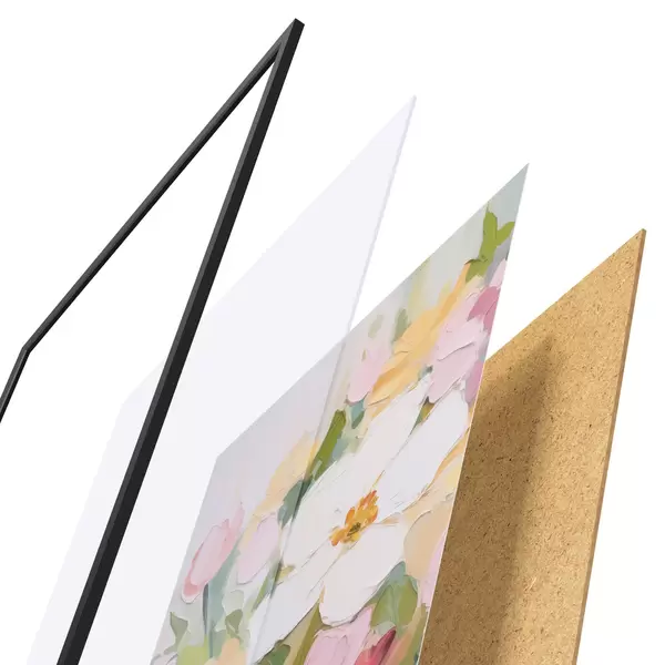 Das Poster besteht aus einem Rahmen, Plexiglas, einem gedruckten Bild und einer Rückwand aus Spanplatten. Dank der Halterungen auf der Rückseite kann das Poster sofort an die Wand gehängt werden.