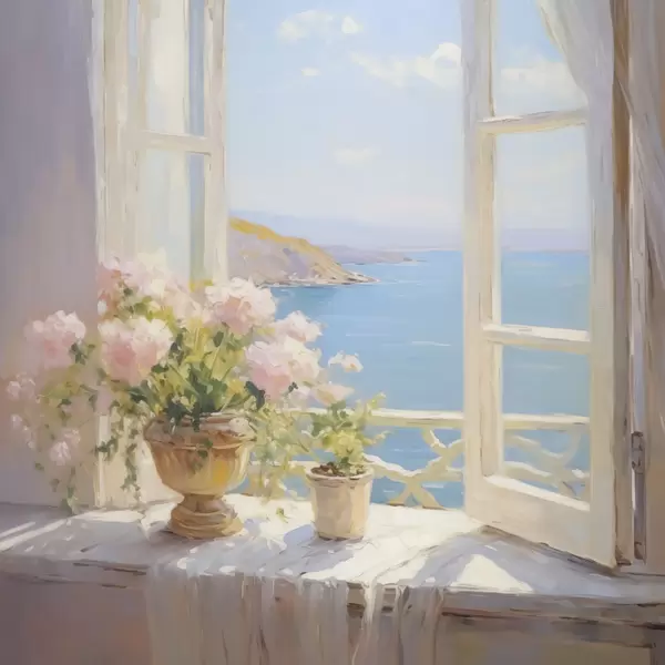Poster Ein Blumenstrauß in einer Vase am Fenster Nr f48053