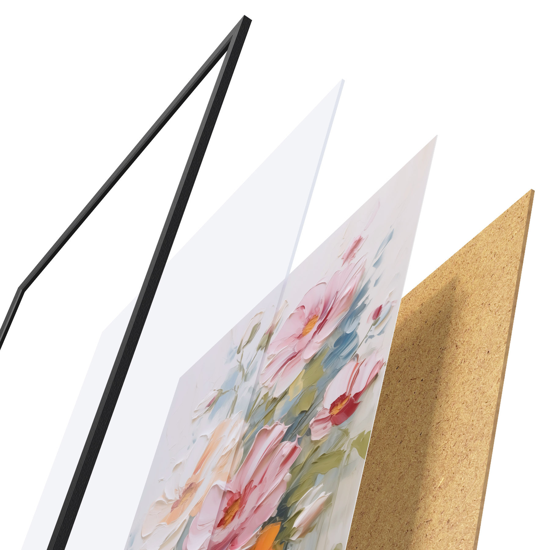 Das Poster besteht aus einem Rahmen, Plexiglas, einem gedruckten Bild und einer Rückwand aus Spanplatten. Dank der Halterungen auf der Rückseite kann das Poster sofort an die Wand gehängt werden.