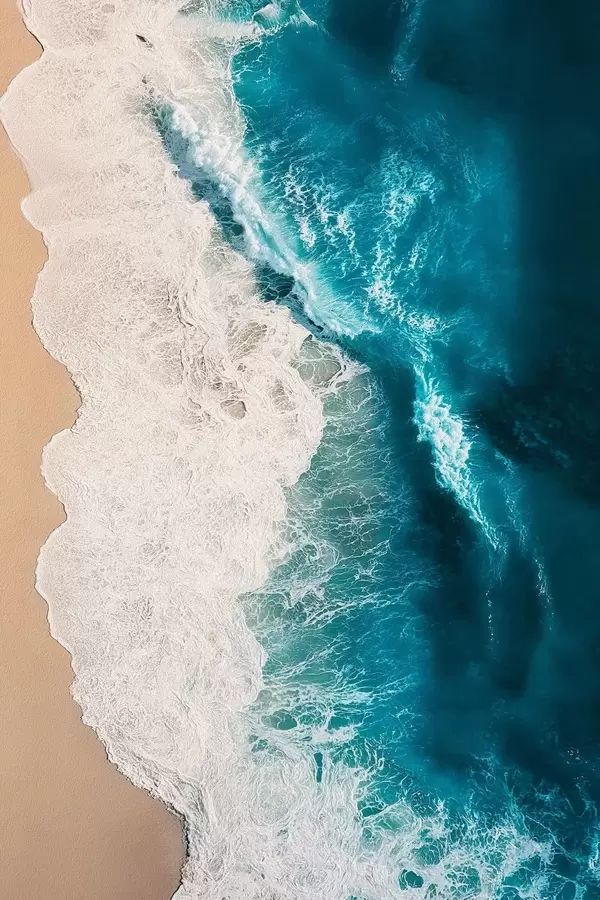 Poster Luftaufnahme von Meereswellen, die auf einen Sandstrand treffen Nr f48062