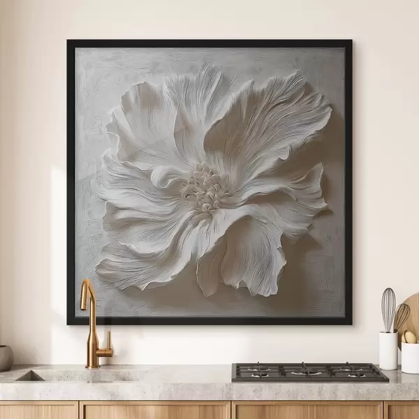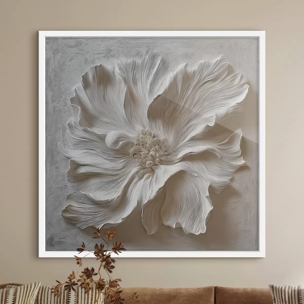 Poster Weiße Gipsrelief-Blumenskulptur Nr f48065
