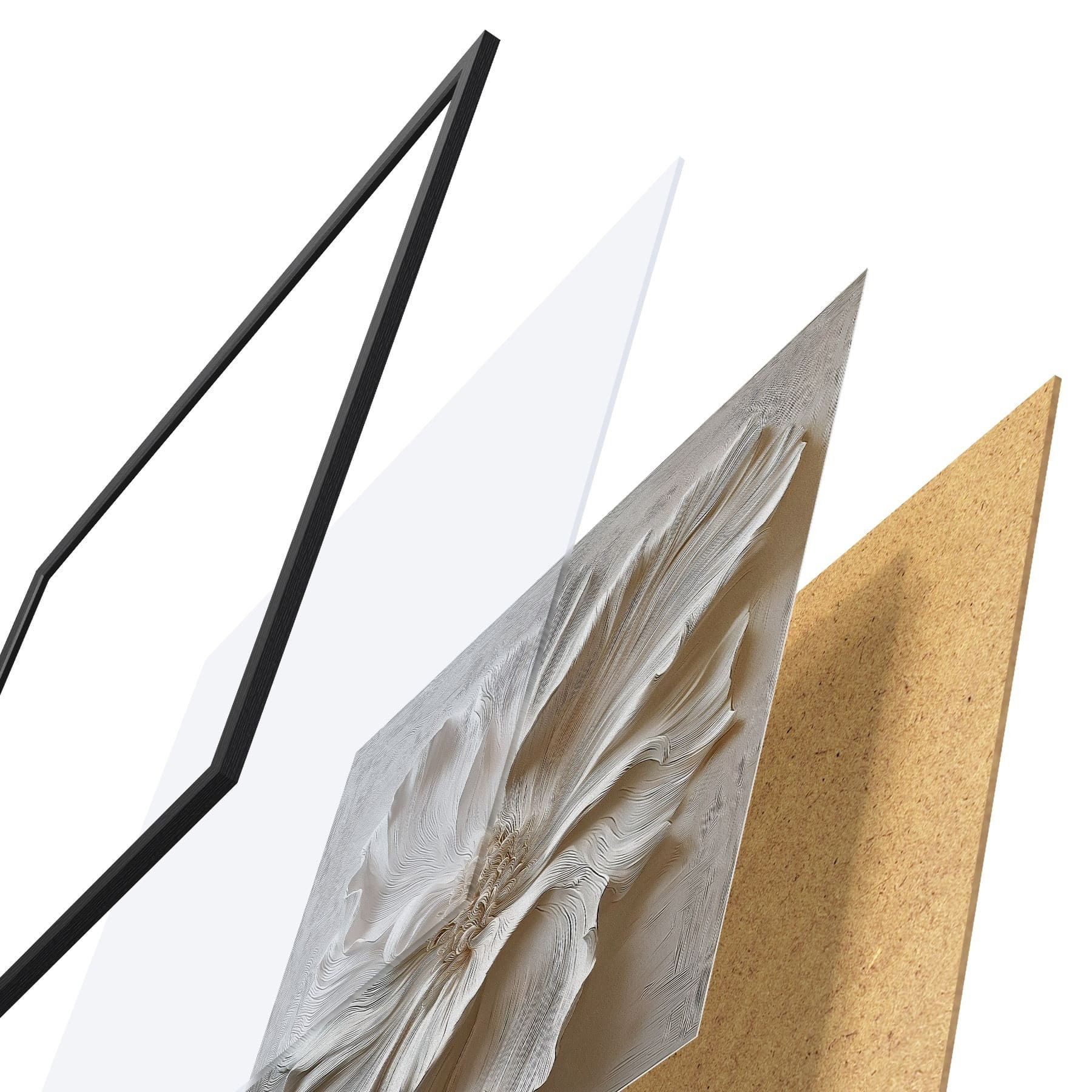 Das Poster besteht aus einem Rahmen, Plexiglas, einem gedruckten Bild und einer Rückwand aus Spanplatten. Dank der Halterungen auf der Rückseite kann das Poster sofort an die Wand gehängt werden.