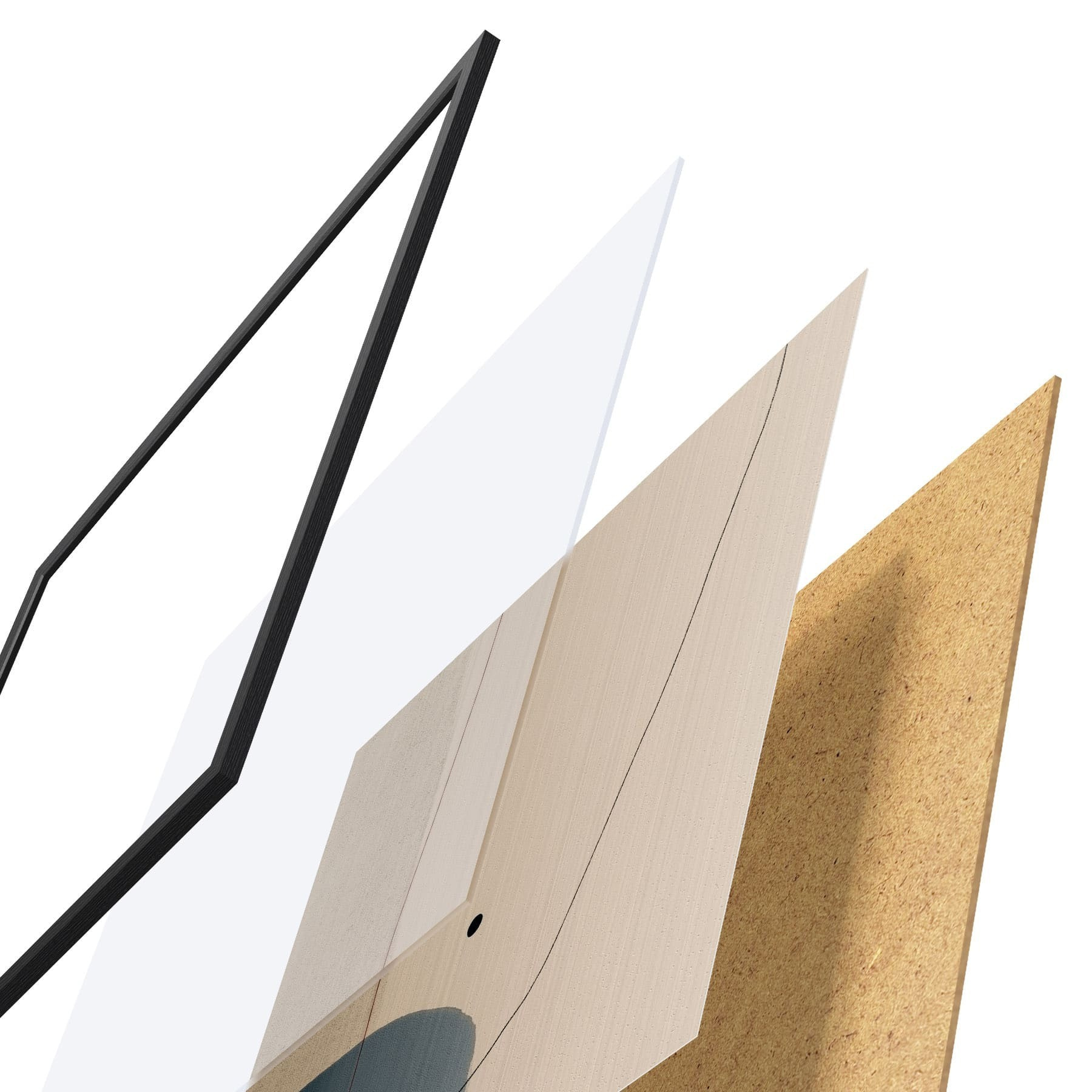 Das Poster besteht aus einem Rahmen, Plexiglas, einem gedruckten Bild und einer Rückwand aus Spanplatten. Dank der Halterungen auf der Rückseite kann das Poster sofort an die Wand gehängt werden.