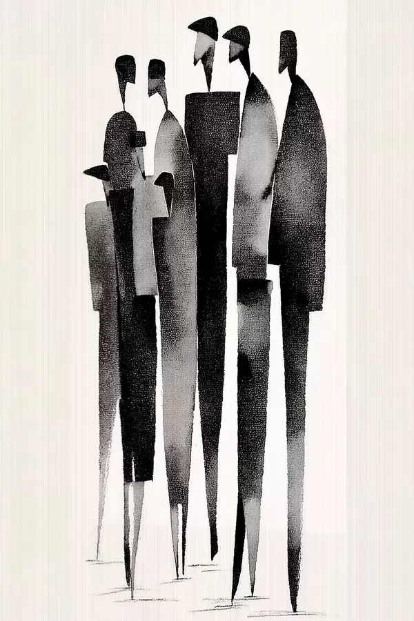 Poster minimalistische, langgestreckte menschliche Figuren, die in einer Reihe stehen Nr f48068