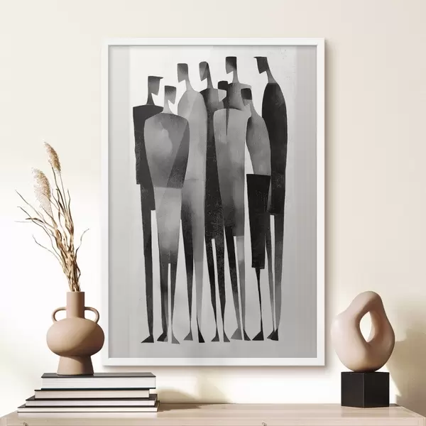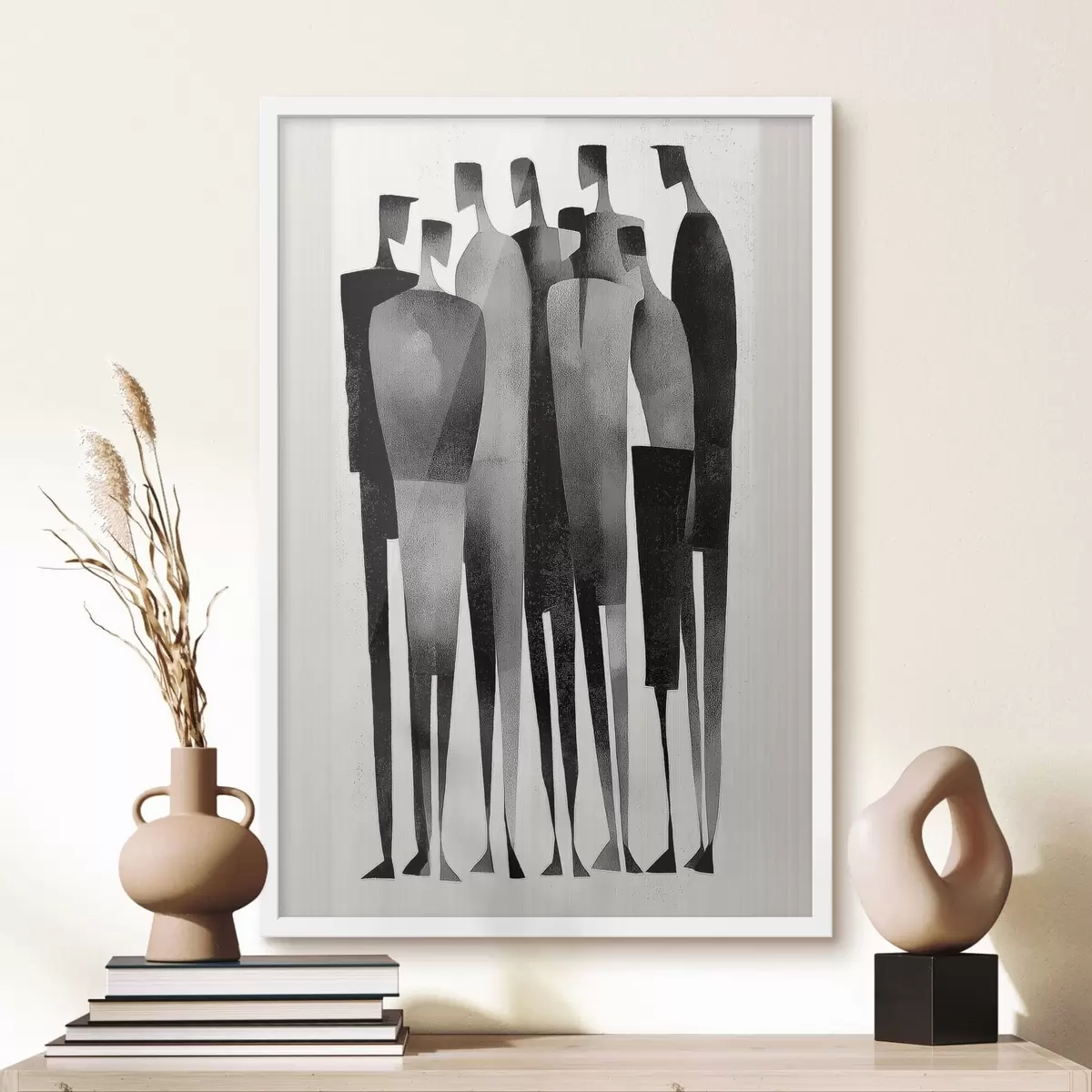 Poster minimalistische, langgestreckte menschliche Figuren, die in einer Reihe stehen Nr f48069