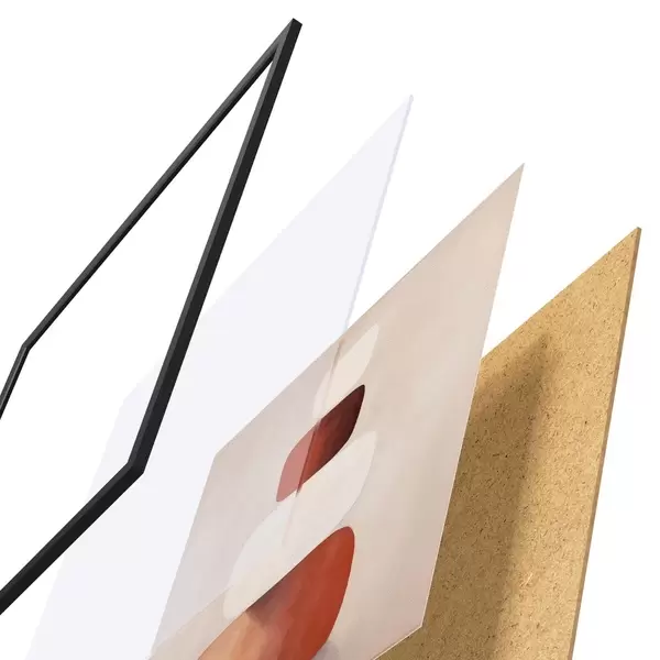 Das Poster besteht aus einem Rahmen, Plexiglas, einem gedruckten Bild und einer Rückwand aus Spanplatten. Dank der Halterungen auf der Rückseite kann das Poster sofort an die Wand gehängt werden.