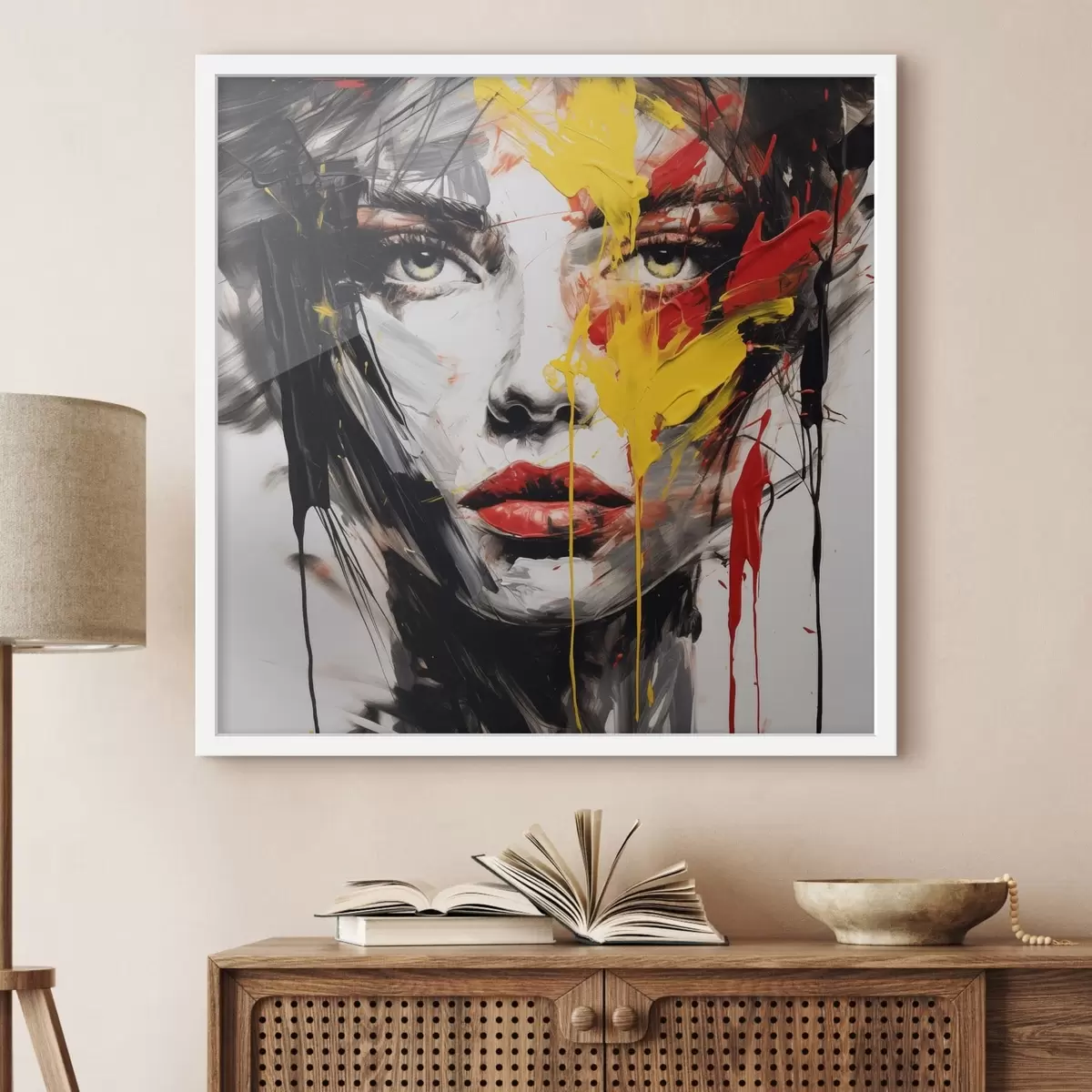 Poster Frauenporträt mit kräftigen Pinselstrichen f48088