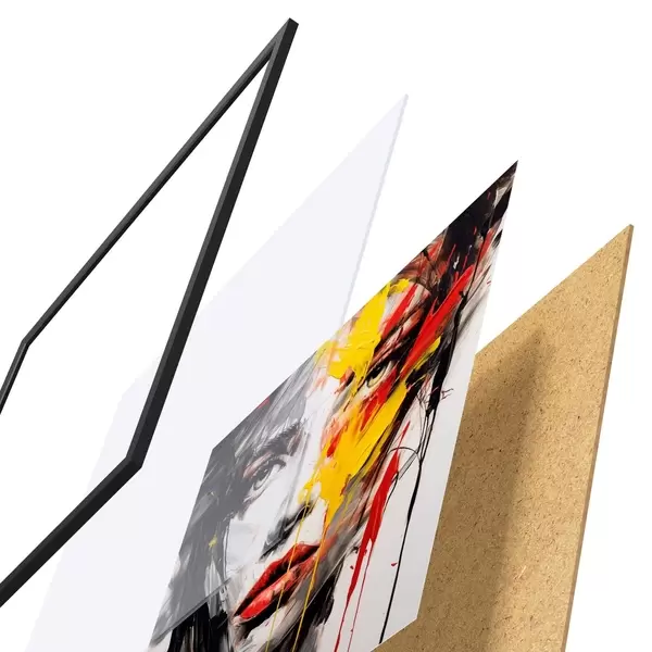 Das Poster besteht aus einem Rahmen, Plexiglas, einem gedruckten Bild und einer Rückwand aus Spanplatten. Dank der Halterungen auf der Rückseite kann das Poster sofort an die Wand gehängt werden.