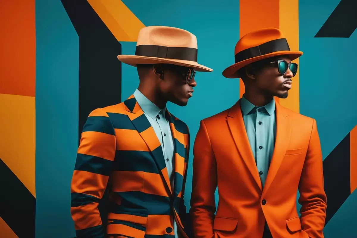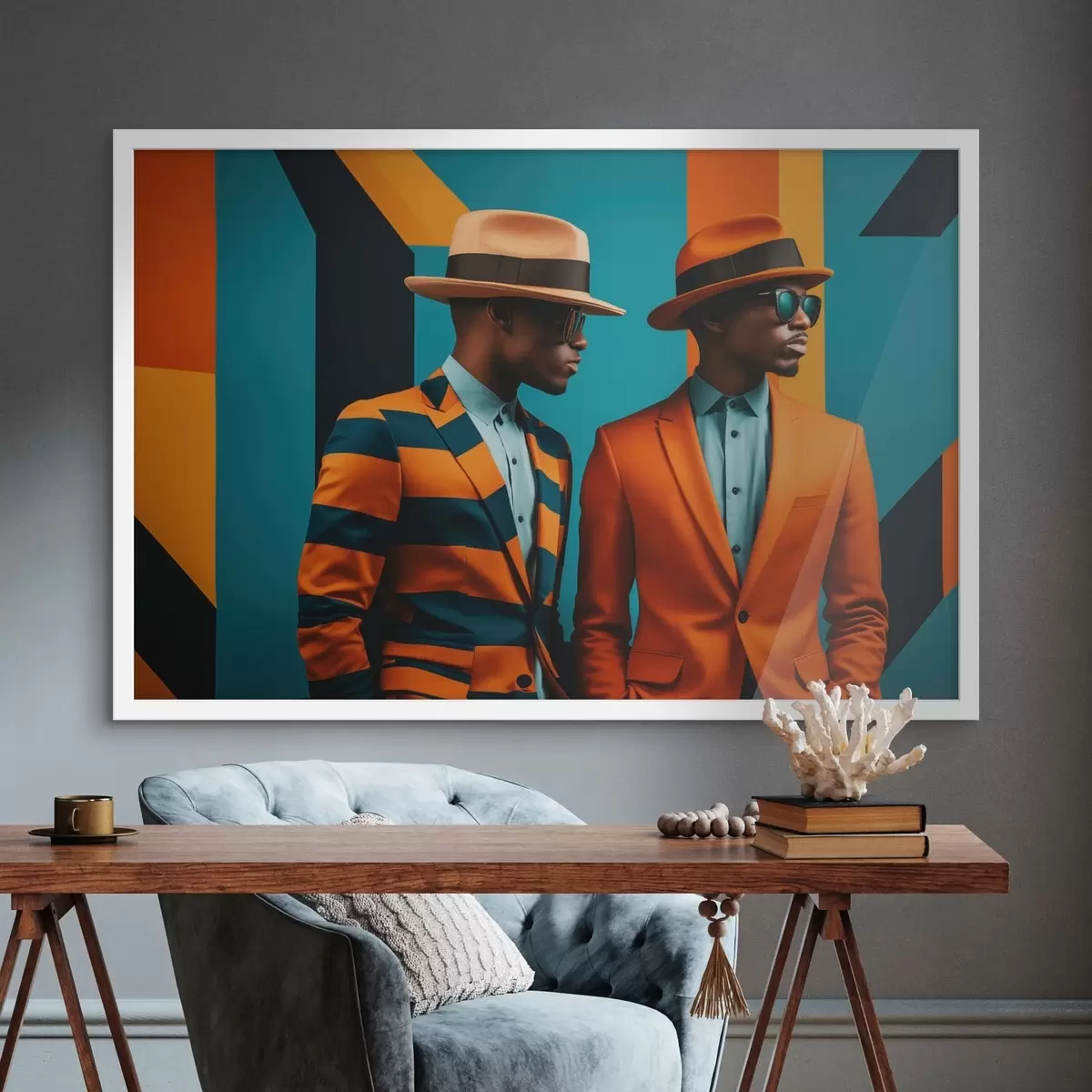 Poster Zwei Männer in bunten Anzügen und Hüten Nr f48091