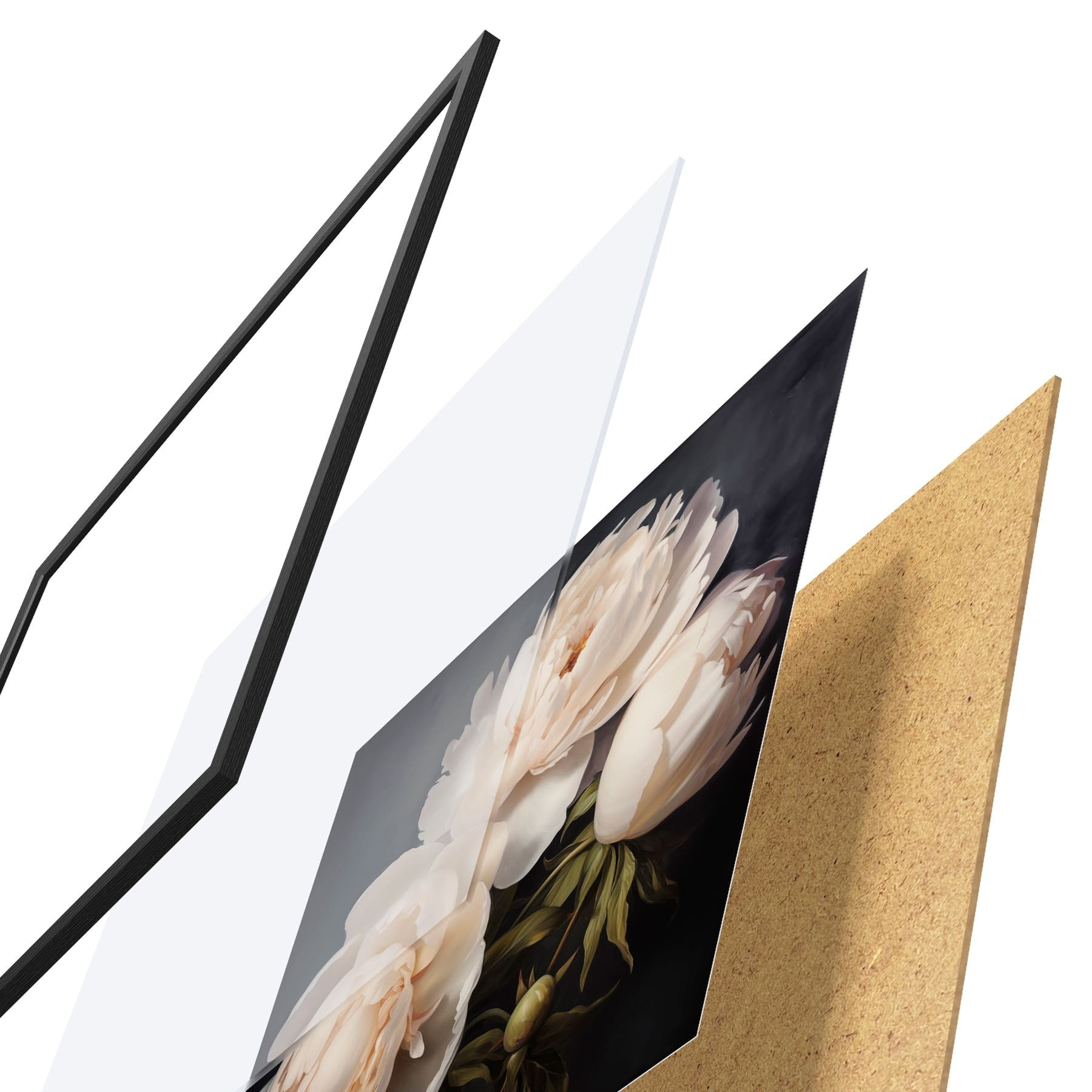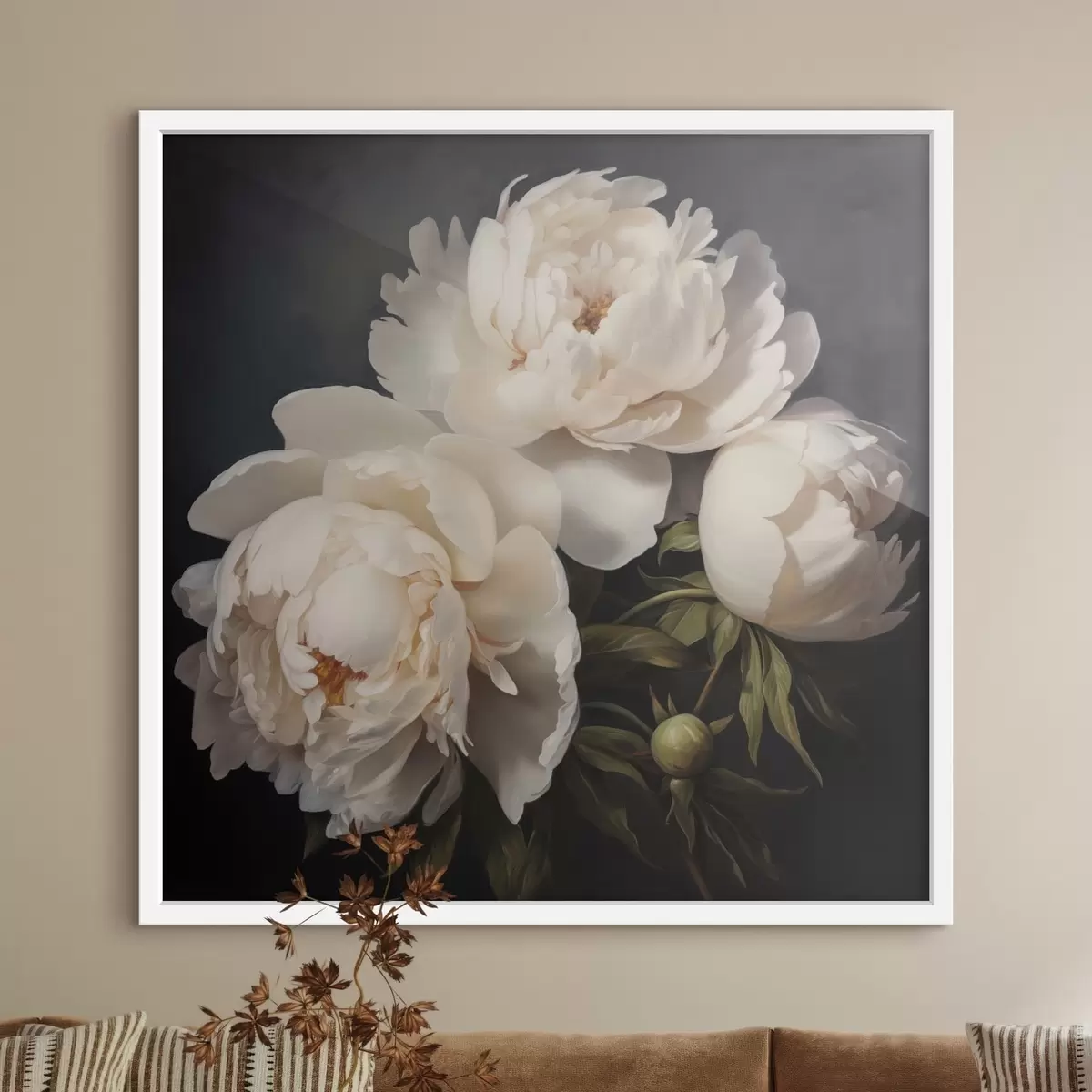 Poster Weiße Pfingstrosen auf dunklem Hintergrund Nr f48101