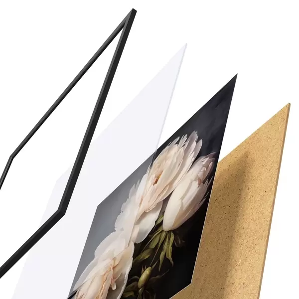Das Poster besteht aus einem Rahmen, Plexiglas, einem gedruckten Bild und einer Rückwand aus Spanplatten. Dank der Halterungen auf der Rückseite kann das Poster sofort an die Wand gehängt werden.