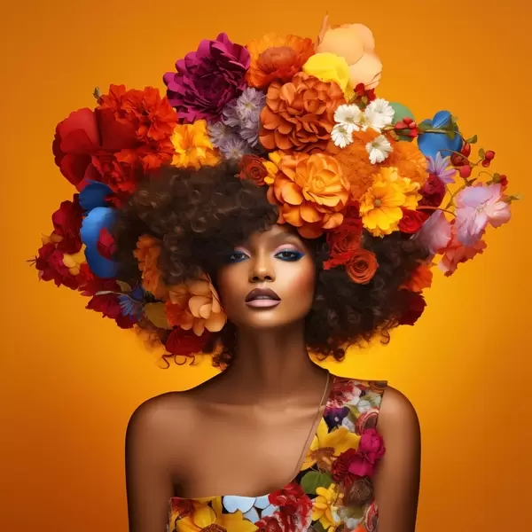 Poster Frau mit Blumenkranz auf orangefarbenem Hintergrund Nr f48102