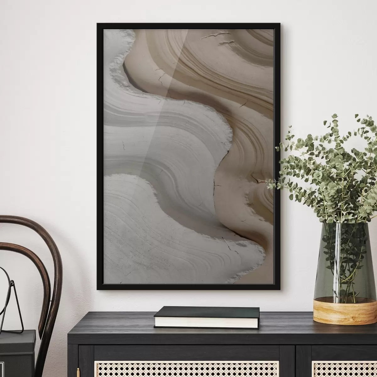 Das Poster besteht aus einem Rahmen, Plexiglas, einem gedruckten Bild und einer Rückwand aus Spanplatten. Dank der Halterungen auf der Rückseite kann das Poster sofort an die Wand gehängt werden.