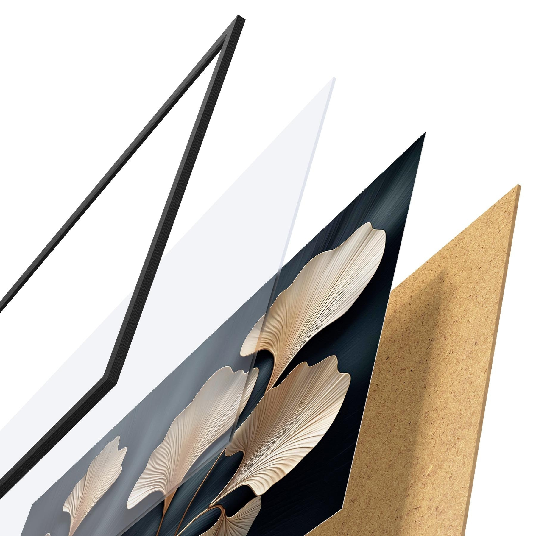 Das Poster besteht aus einem Rahmen, Plexiglas, einem gedruckten Bild und einer Rückwand aus Spanplatten. Dank der Halterungen auf der Rückseite kann das Poster sofort an die Wand gehängt werden.