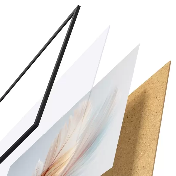 Das Poster besteht aus einem Rahmen, Plexiglas, einem gedruckten Bild und einer Rückwand aus Spanplatten. Dank der Halterungen auf der Rückseite kann das Poster sofort an die Wand gehängt werden.