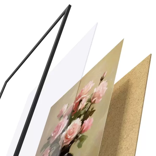 Das Poster besteht aus einem Rahmen, Plexiglas, einem gedruckten Bild und einer Rückwand aus Spanplatten. Dank der Halterungen auf der Rückseite kann das Poster sofort an die Wand gehängt werden.