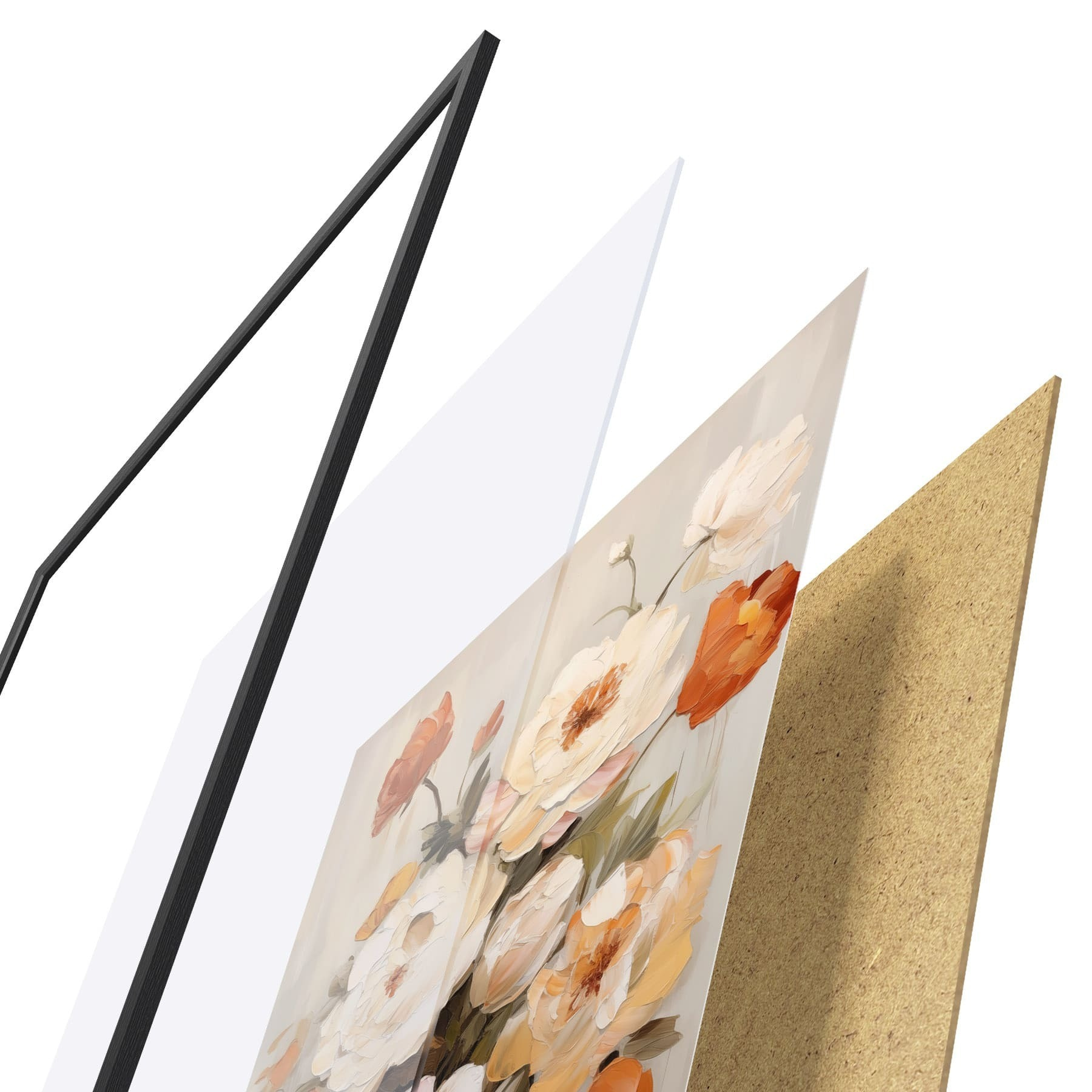 Das Poster besteht aus einem Rahmen, Plexiglas, einem gedruckten Bild und einer Rückwand aus Spanplatten. Dank der Halterungen auf der Rückseite kann das Poster sofort an die Wand gehängt werden.