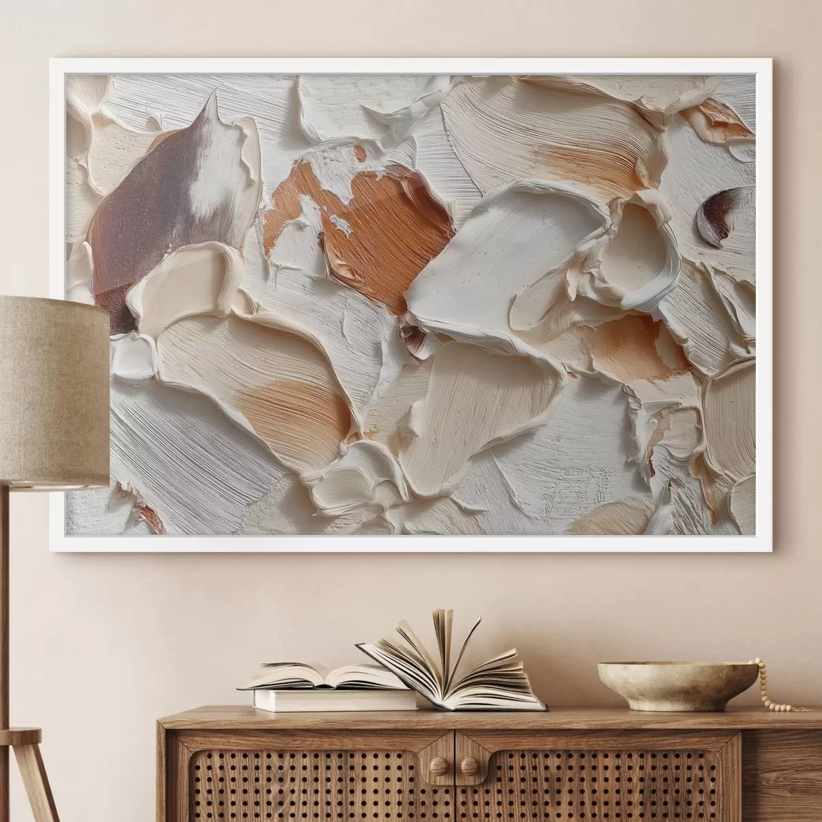 Das Bild kann vorsichtig mit einem trockenen, weichen Tuch oder Schwamm abgewischt werden; es wird nicht empfohlen, feuchte Produkte zu verwenden. Die Verwendung eines feuchten Schwamms ist nur zulässig, wenn das Bild lackiert wurde.