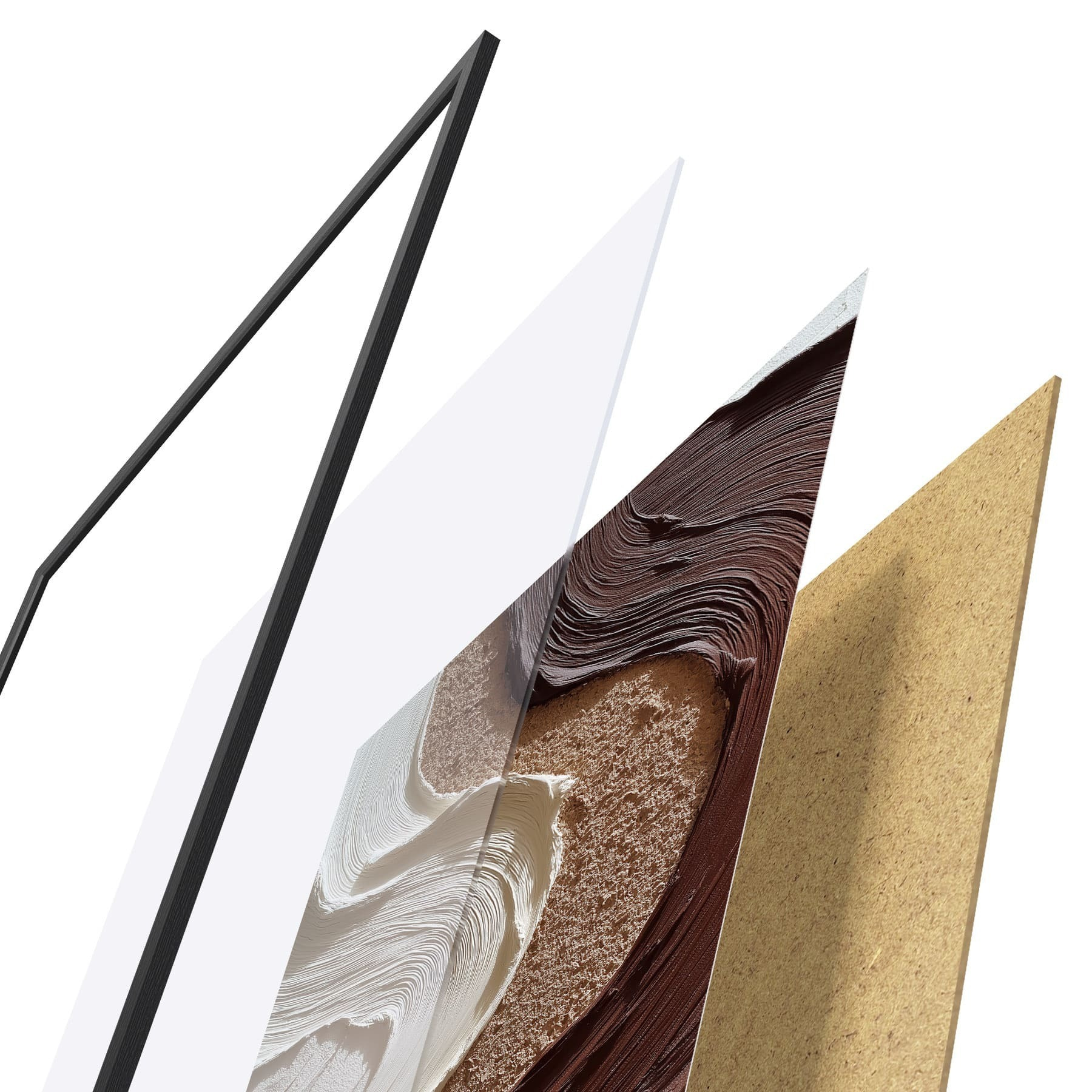 Das Poster besteht aus einem Rahmen, Plexiglas, einem gedruckten Bild und einer Rückwand aus Spanplatten. Dank der Halterungen auf der Rückseite kann das Poster sofort an die Wand gehängt werden.