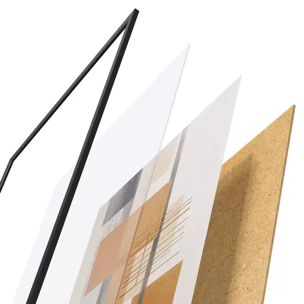Das Poster besteht aus einem Rahmen, Plexiglas, einem gedruckten Bild und einer Rückwand aus Spanplatten. Dank der Halterungen auf der Rückseite kann das Poster sofort an die Wand gehängt werden.