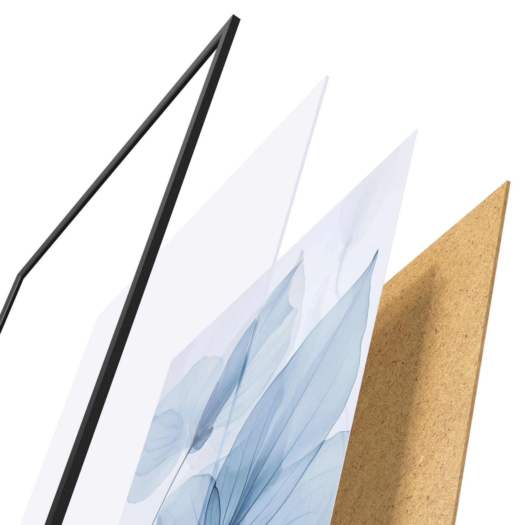 Das Poster besteht aus einem Rahmen, Plexiglas, einem gedruckten Bild und einer Rückwand aus Spanplatten. Dank der Halterungen auf der Rückseite kann das Poster sofort an die Wand gehängt werden.