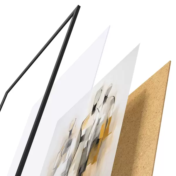 Das Poster besteht aus einem Rahmen, Plexiglas, einem gedruckten Bild und einer Rückwand aus Spanplatten. Dank der Halterungen auf der Rückseite kann das Poster sofort an die Wand gehängt werden.