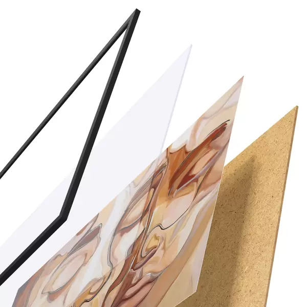 Das Poster besteht aus einem Rahmen, Plexiglas, einem gedruckten Bild und einer Rückwand aus Spanplatten. Dank der Halterungen auf der Rückseite kann das Poster sofort an die Wand gehängt werden.