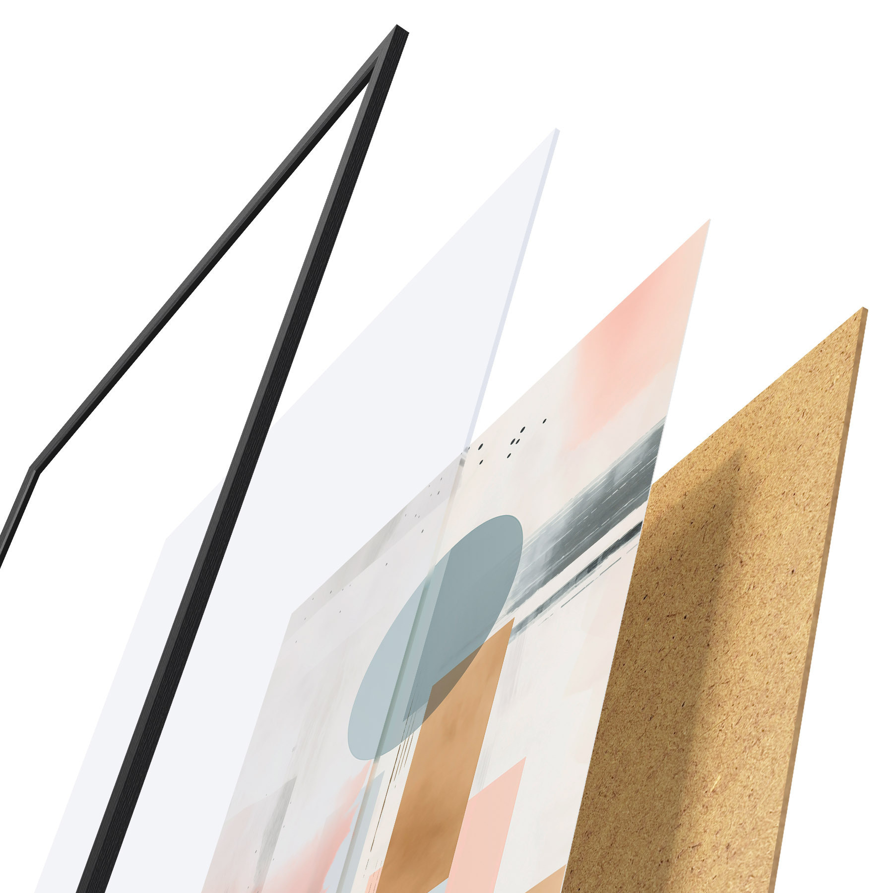 Das Poster besteht aus einem Rahmen, Plexiglas, einem gedruckten Bild und einer Rückwand aus Spanplatten. Dank der Halterungen auf der Rückseite kann das Poster sofort an die Wand gehängt werden.